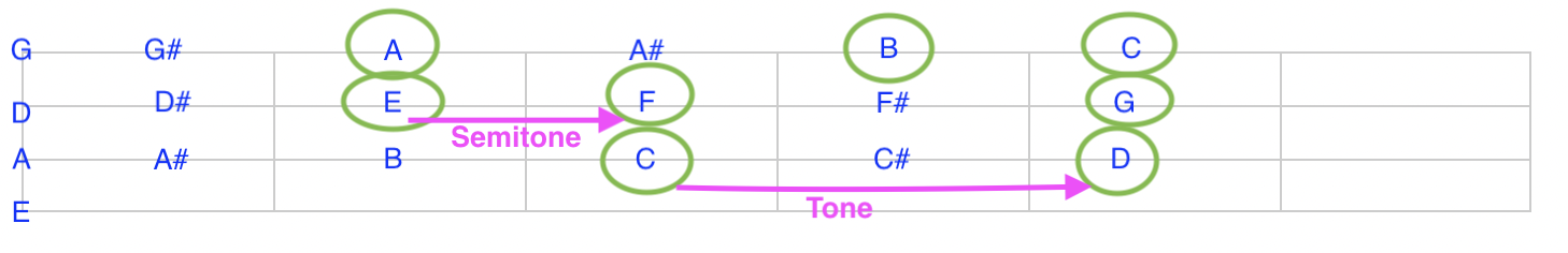 Tone - Tone - Semitone - Tone - Tone - Tone - Semitone